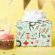 Creative medical-themed Christmas gift wrap design featuring healthcare supplies and holiday candy.
