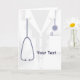 A graphic medical coat design on a custom greeting card. The card has text templates for you personalization. ©2013charmainepaulson