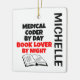 This is a unique ornament featuring the quote "Medical Coder by Day Book Lover by Night", perfect for any medical coder that loves to read.