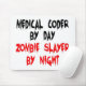 This funny text design features the phrase "Medical Coder by Day Zombie Slayer by Night" and is perfect for any medical coder who loves zombies.