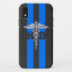 The Symbolic Chrome Like Caduceus Medical Symbol design presented here on a carbon fibre vibrant blue stripes printed background. The caduceus snakes is designed to look like it is made of chrome. Good for a graduation occasion, a statement for your profession, or for a gift with that medical look your are looking for.