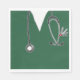 Medical-themed napkins for doctor graduation party, birthday or other celebration. Design features green hospital scrubs with funny Swiss army knife in the pocket.