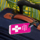 Medical Equipment Luggage Tag with message handle with care in pink. It is perfect for anyone transporting medical equipment, for a medic, a health professional or a diabetic. The perfect luggage identifier to display on your luggage and have everyone handle with care. This medical alert label will keep your medical equipment easy to identify.