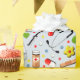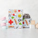 Creative medical-themed gift wrap or party decor featuring healthcare supplies and flowers illustration for doctor, nurse or other healthcare professional.