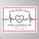 This heartbeat-themed graduation party sign features a bold mix of black and red, with a striking red double-line frame and a red background, adding a modern yet timeless touch. The classic serif fonts and clean, modern typography perfectly complement the EKG heart line, making it an ideal way to celebrate a medical or nursing school graduate. While the current design features black and red, all colours—including the heartbeat line and background—can be customized to match school colours or the graduate’s favourite shades.