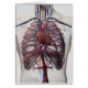 Medical illustration of male chest with arteries, veins, heart and rib cage.