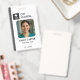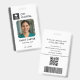 A modern medical ID badge template with a clean grey colorway, featuring space for your photo, name, job title, ID number, and custom logo. Designed to be versatile for medical technicians, lab staff, radiology teams, nurses, and hospital support employees. The back includes placeholders for a barcode, QR code, and lost and found contact information for added functionality and security. Perfect for hospitals, clinics, labs, and healthcare organizations that need customizable, professional staff identification.