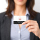 Budget friendly editable health and medical theme employee name badge designed with a heart and cross emblem and text you can customize online with your business name and staff member template. Available in bulk and one off printing as you need them.