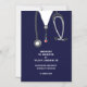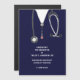 Creative doctor graduation announcement for medical school graduate featuring scrubs and stethoscope art.