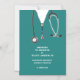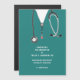 Creative doctor graduation announcement for medical school graduate featuring scrubs and stethoscope art.