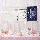 Creative medical school graduation banner for doctor grad featuring congrats, lab coat and stethoscope. To personalize edit text to add physician's name and credentials.
