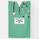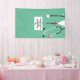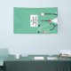 Doctor medical school graduation party banner featuring creative scrubs and Swiss Army knife design. Edit text to add physician's name and medical credentials.