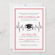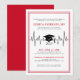 This sleek and modern graduation invitation features an elegant mix of classic serif fonts and clean, modern typography in a combination of black and red for a timeless yet contemporary look. The design showcases an EKG heartbeat line with a graduation cap in the centre, displaying "Class of 2026" on top, with the graduation year below. A thin double-line frame with red accents adds a refined touch, making it perfect for celebrating a medical or nursing school graduate.