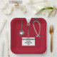 Creative med school graduation congratulations party plates for medical school graduate. To personalize, edit text to add doctor, physician assistant, or nurse's name or otherwise customize.