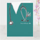 Creative medical school graduation card featuring hospital scrubs with a Swiss Army knife in the pocket. To personalize, edit text to add doctor's name.