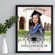 This graduation-themed party sign features a bold design with a photo background and a white gradient at the bottom. At the top, "Congrats Grad" stands out in classic serif fonts, while the bottom showcases a graduation cap illustration, followed by the graduate's name, school name, and date. The modern yet timeless design combines the celebratory tone of the graduation cap with personalized details, making it perfect for any graduate.