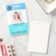 Medical employee photo badge with stethoscope, heart and heartbeat. Sample shows REGISTERED NURSE title but can be edited for any staff position. Include a logo or delete the sample image. BACKGROUND COLOR CHANGE: The blue-green gradient background colour can be changed by using the colour filter in the design screen or the image can be deleted and replaced with a solid background colour. Contact the designer if you need assistance with colour or would like this design modified.