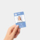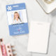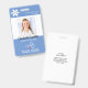 Medical employee photo badge with stethoscope, heart and heartbeat. Sample shows TRAVEL NURSE title but can be edited for any staff position. Include a logo or delete the sample image. BACKGROUND COLOR CHANGE: The medium blue background can be changed by clicking on the CUSTOMIZE FURTHER tab.