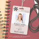 Medical employee photo badge with stethoscope, heart and heartbeat. Sample shows TRAVEL NURSE title but can be edited for any staff position. Include a logo or delete the sample image. BACKGROUND COLOR CHANGE: The blush pink background can be changed by clicking on the CUSTOMIZE FURTHER tab.