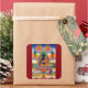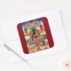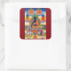 Square stickers featuring Medicine Buddha, seated on a lotus surrounded by other Buddhas in the Tibetan tradition. He offers healing and protection form physical and mental disease. This image is a reproduction of an antique thangka tapestry religious painting.