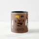 Native face and medicine wheels on a mug. Colours include red, yellow, black, white, gold and brown. Linda LaBow Wagner copyrighted works.