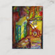 Historical alley ,antique street with red wheelbarrow and a black cat .Colourful, whimsical nocturne view from Firenze in vibrant sparkling colours; yellow orange brown purple green floral ,fall,autumn leaves,gold sparkles Abstract figurative contemporary fine art, watercolor painting with golden and silver foil by Bulgan Lumini (c).