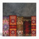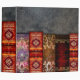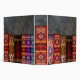 A row of beautiful, ornate gilded book spines against a stone castle wall backdrop.