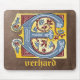 Medieval Blue and Red Ivy Illuminated Letter E Mouse Pad
