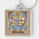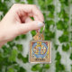 Medieval Blue and Red Ivy Illuminated Letter W Keychain