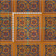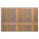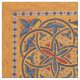 Abstract geometric design featuring detail from medieval Armenian illuminated manuscript in gold, red and blue