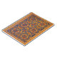 Abstract geometric design featuring detail from medieval Armenian illuminated manuscript in gold, red and blue