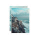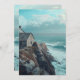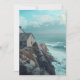 Digital art featuring a medieval cottage on a cliff overlooking the ocean. AI-generated.