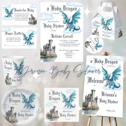 Dragon Baby Shower invitations stationery decorDesigned by Ieva Jenciute