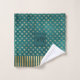 Beautiful faux gold glitter Medieval-style patterned Bath Towel Set on deep teal background with decorative font typography monogram. You can easily customize the initials. Co-ordinating striped trim adds elegance & class to adorn your own bathroom decor or delight someone special as a personalized gift.