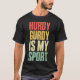 This simply says "hurdy gurdy is my sport" and is meant for people who enjoy playing musical instruments, especially the hurdy gurdy.