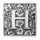 A black and white vector illustration of the letter in an elaborate medieval style, created in the style of Albrecht Dürer. The design is a square with a large central floral motif surrounded by symmetrical geometric patterns and swirls.