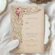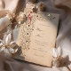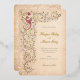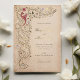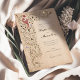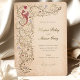 This beautifully designed wedding invitation features a rich medieval-inspired theme, adorned with intricate gold foil details and a vintage scrollwork pattern. The luxurious design includes a mythical red dragon/phoenix, symbolizing renewal and celebration, surrounded by golden vines, delicate florals, and whimsical accents in soft hues of lavender and blush. The background's parchment-like beige colour adds a rustic, antique feel, evoking a timeless, storybook elegance. The back of the invitation continues the botanical gold pattern with hand-drawn medieval flourishes, enhancing its enchanting look. Perfect for a vintage, fantasy, or fairytale wedding theme, this invitation brings a sense of magic and sophistication to your special day.