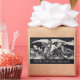 Knight and dragon illustration in black and white vintage image. A knight with wings, holding a shield and sword battles a dragon. Personalize with your name or message in white uppercase font.