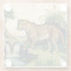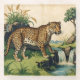 Medieval Leopard with Waterfall Nature Art Glass Coaster