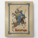 A depiction of a battle between a Russian bogatyr and an Asiatic warrior, both on horseback. Cyrillic (Russian) text reading "Богатырь"(Bogatyr) also appears. Bogatyri are heroic characters found in medieval Slavic epics. They are akin to the knights-errant of Western literature. Most of the stories about bogatyri revolve around the court of Vladimir I of Kiev (958–1015). Some bogatyri are presumed to be historical figures. Bogatyri protected Russian land and people against invaders, especially Tatars. Some were attributed powers and strength which were almost divine. This image is adapted from a black and white line drawing illustration in "Повесть о славных богатырях, златом граде Киеве и великой напасти на землю Русскую" (A Tale of Glorious Heroes From the Golden City Kiev and the Great Scourging of the Russian Land) by Tamara Likhiotal; published in the USSR in 1974.