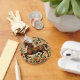 This product features a highly stylized, ornate depiction of a horse in a decorative, floral pattern. The horse is adorned with intricate, richly coloured designs in red, green, gold, and other hues, giving it a regal and festive appearance. Surrounding the horse are vivid, blooming flowers and swirling vines, all illustrated in a similar ornamental style, creating a harmonious and elegant composition. The background has a warm, vintage parchment-like texture, adding to the overall aesthetic appeal of the artwork.