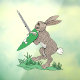 A shield-bearing sword-wielding rabbit based on various fighting or otherwise murderous rabbits found in medieval marginalia.
