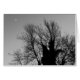 An atmospheric black and white photo of a tree silhouetted against a winter afternoon sky with a half moon. The tree seems to personify a strange nature spirit dancing to some kind of medieval music.