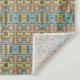 An intricate geometric pattern consists of repeating squares and rectangles in shades of brown, yellow, and blue. The design has a symmetrical, grid-like arrangement with a vintage or retro feel.