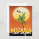 Medina Saudi Arabia vacation poster of a vintage prop plane flying across the evening sky.