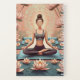 Un journal de méditation rose et vert qui montre une femme faisant la médiation entre les fleurs de lotus.