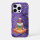 This unique iPhone case features a serene woman meditating in the vast expanse of the cosmos. Set against a backdrop of irregular, skewed yellow stars scattered across a purple sky, the background showcases abstract, dark-coloured energy patterns swirling in the centre, adding depth to the design. The woman sits in a cross-legged position at the centre, embodying a deep connection with the universe.