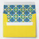 Mediterranean blue and yellow tiles wedding envelope. Bring the vibrant beauty of the Mediterranean to your wedding invitations with this envelope. The inside features a stunning tile pattern, a classic motif rendered in deep Mediterranean blue and a joyful yellow. These intricate tiles capture the essence of Italian design and the relaxed elegance of La Dolce Vita. The outside of the envelope is finished in a smooth, solid yellow, providing a sophisticated contrast and completing the overall aesthetic.