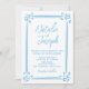 This wedding invitation is perfect for your wedding if you are looking for an elegant unique and easy editable invitation .An elegant unique simple minimalist white and blue hand drawn mediterranean italy wedding template invitation. Which features plain white vintage background on the front and hand drawn floral blue frame. And blue hand written whimsical bride's and groom's first names. And on the back you got a customizable photo on a hand drawn floral pattern. And editable info Affordable and it is also digital electronic e-invitation if you want to send it by text or email. All the info are customizable by clicking on the personalize button. So Grab it and make it yours so you make you invites engaged and excited .