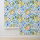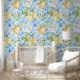 Mediterranean Blue Tile Yellow Lemon Watercolor Wallpaper